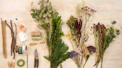 - Fresh, dried, or faux flowers and leaves